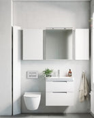 Köp till handtag eller push-open paket för handtagslös dörröppning och elbox för eluttag. Kombinera CROWN sidoförvaring med CROWN spegelskåp skapar extra förvaring ofta på platser där de inte tar någon extra plats ovanför en toalett eller vid sidan om ett spegelskåp.