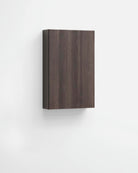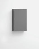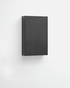 CROWN väggskåp med lucka för ditt badrum. Mjukstängande lucka som är vändbar för höger och vänstermontage. Två svarttonade hyllplan i glas.