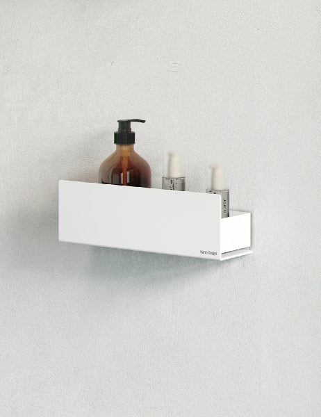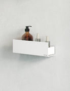 LEDGE är en praktisk duschhylla i aluminium med pulverlack finns i vitt eller svart.