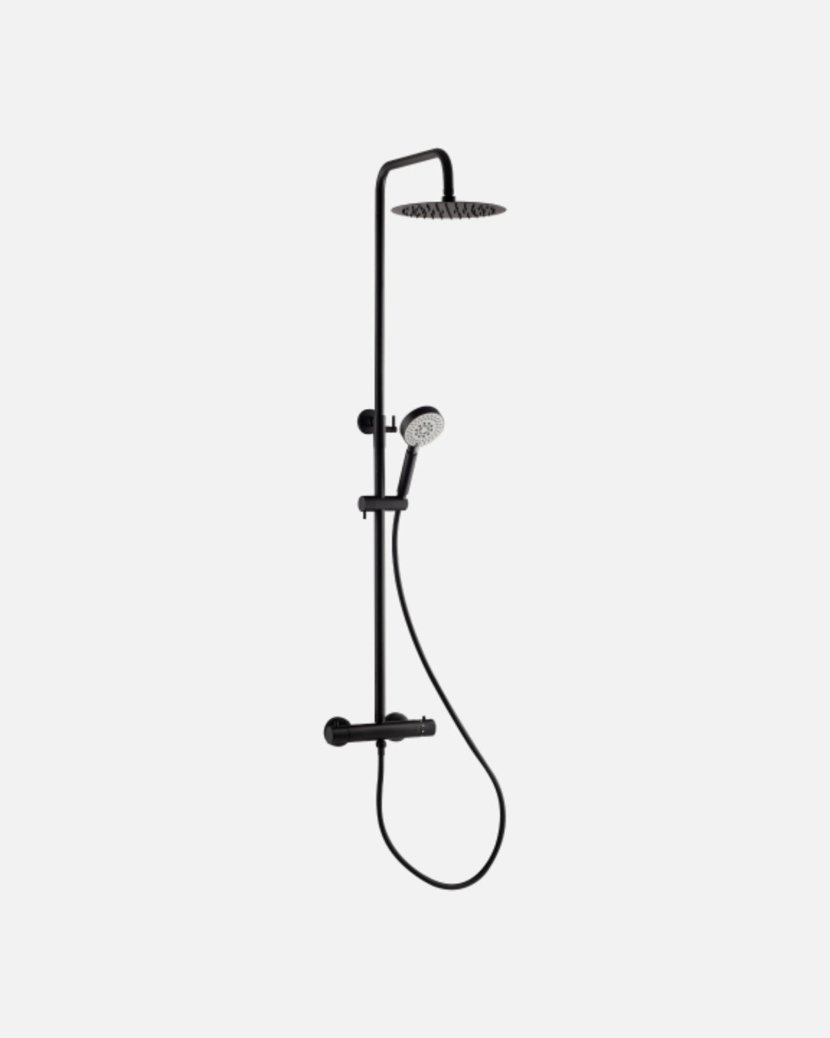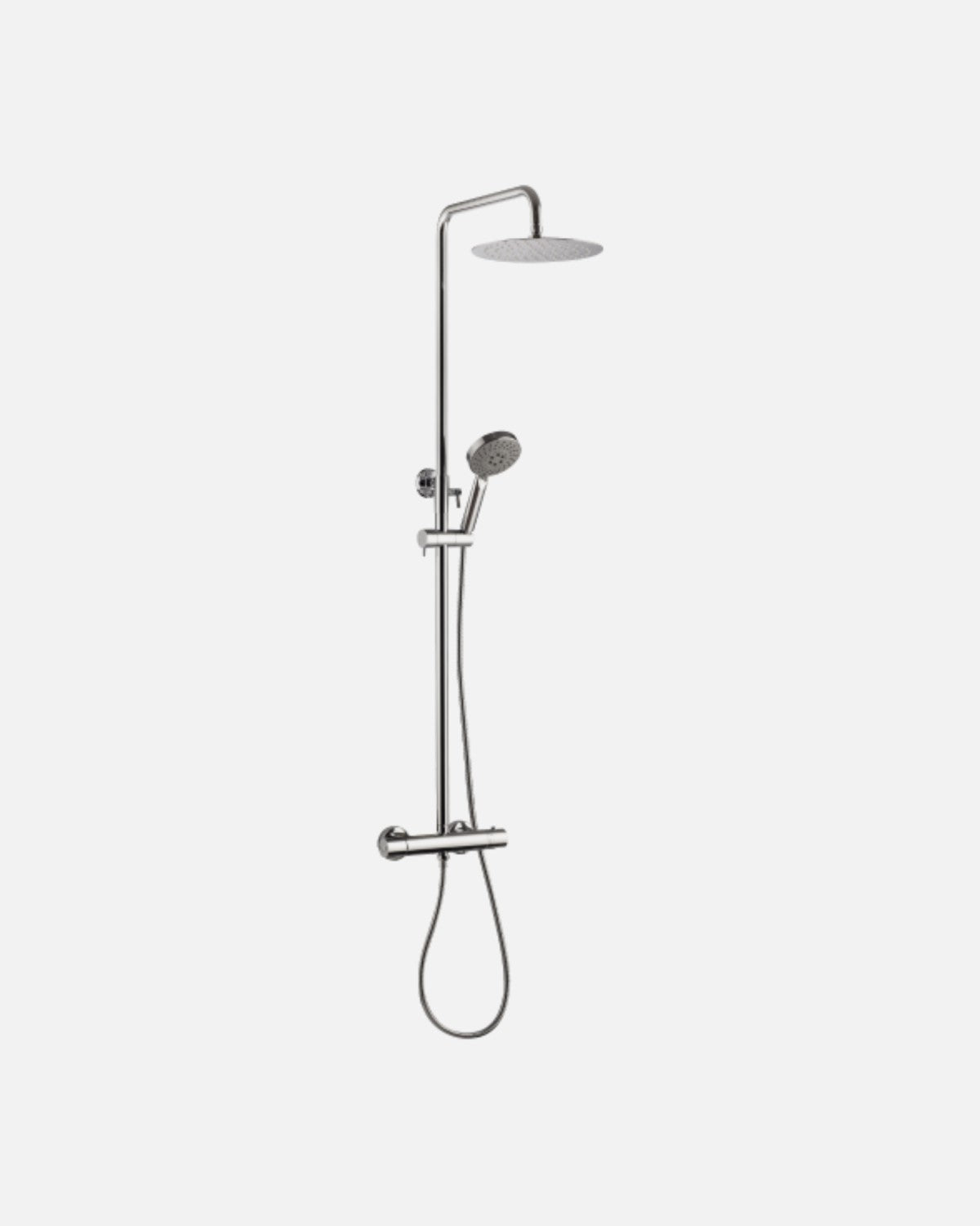 IMO takdusch och bekväm handdusch komplett med termostat. Höj- och svängbar arm till takduschen för att undvika kallvatten vid start. Duschstril ø250 mm.