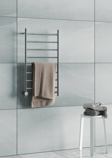 MIND är en klassisk och yteffektiv modell som passar i de flesta badrum. Finns i två varianter: Standard (endast on/off) och Timer (boost och on/off). Elanslutning på höger eller vänster sida. Tillverkad av rostfritt stål.