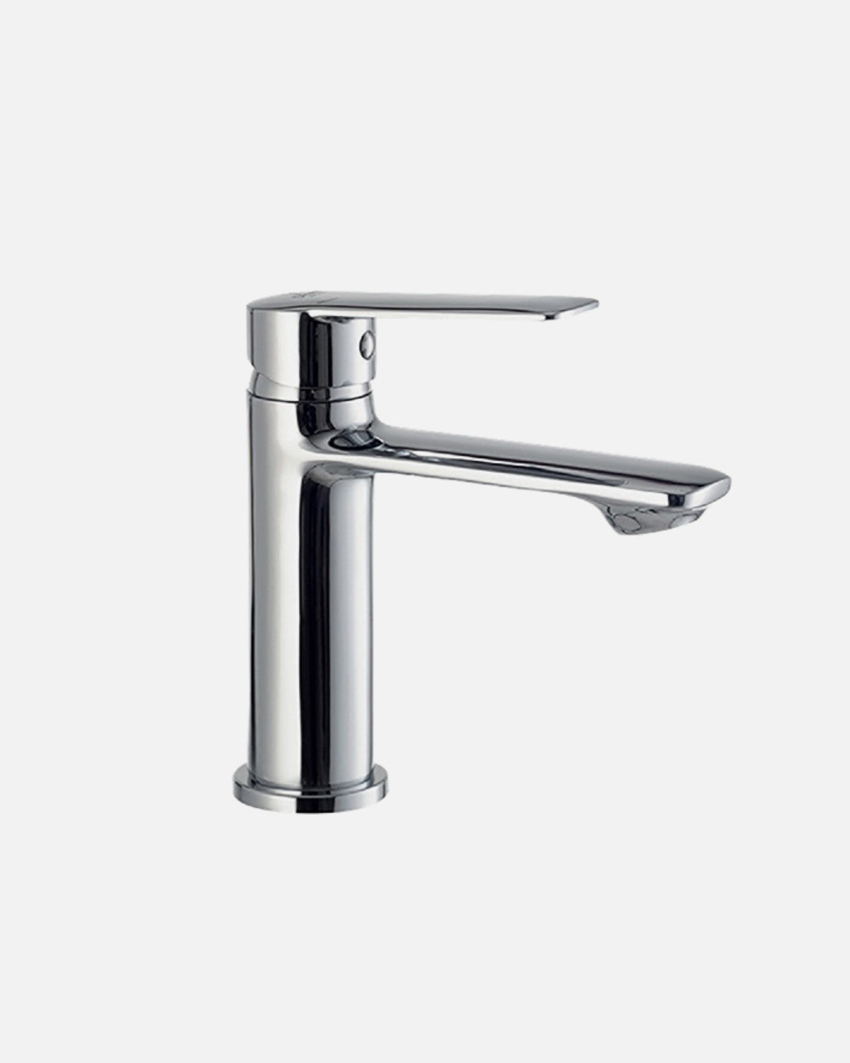 TARO - Elegant, slimmad tvättställsblandare i krom med förmonterade slangar och gängstång. Anti Swirl slang. Mycket enkel installation.